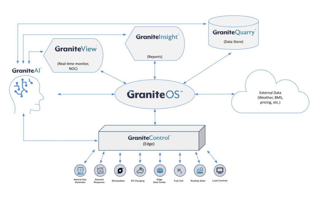 GraniteOS is the operating system that synchronizes all components of your microgrid, automating transitions, coordinating assets, and ensuring seamless orchestration between utility power, distributed generation, and energy storage.