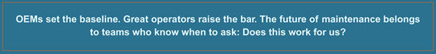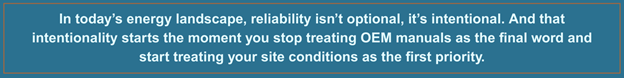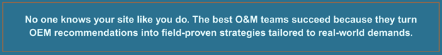 OEM recommendations are necessary, but not always sufficient. When site conditions exceed design standards, reliability can suffer unless maintenance programs evolve. The most successful operators are those who treat maintenance not as a checklist, but as a strategy, combining OEM expertise with field intelligence to ensure performance where it matters most: in the real world.